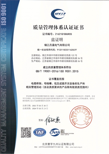镇江丹晨电气有限公司于2015年注册成立,是专业生产电缆桥架、电缆支架、母线槽、开关柜等电气设备的 公司。公司的技术力量雄厚、生产规模大、机械装备先进,销售网络和售后服务体系四通八达,在国内市场占有 一定的销售份额,具有较强的竞争力和良好的信誉度。