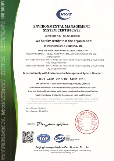 环境管理体系认证证书(中文)